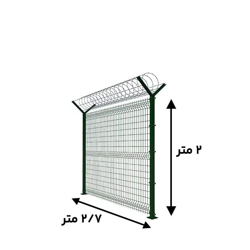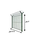 در این مدل پایه ی نرده دارای دستک V شکل از نبشی ۴۰ با خم ۱۳۵ درجه می باشد که دارای ۶ عدد پانچ (سوراخ) جهت اتصال سیم خاردار خطی و حلقوی با استفاده از مفتول می باشد.